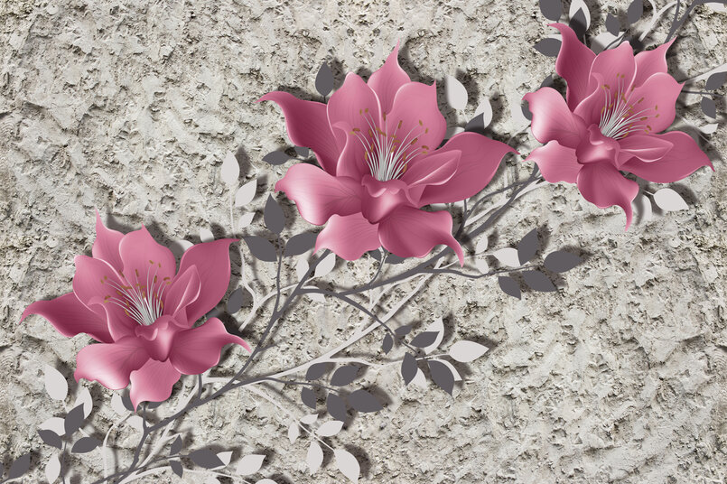 3D Магнолии на сером фоне Артикул: FS_457