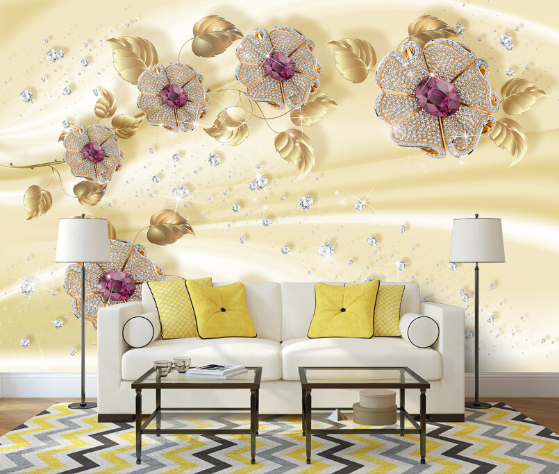 3D Мелкие цветочки на желтом Артикул: FS_508