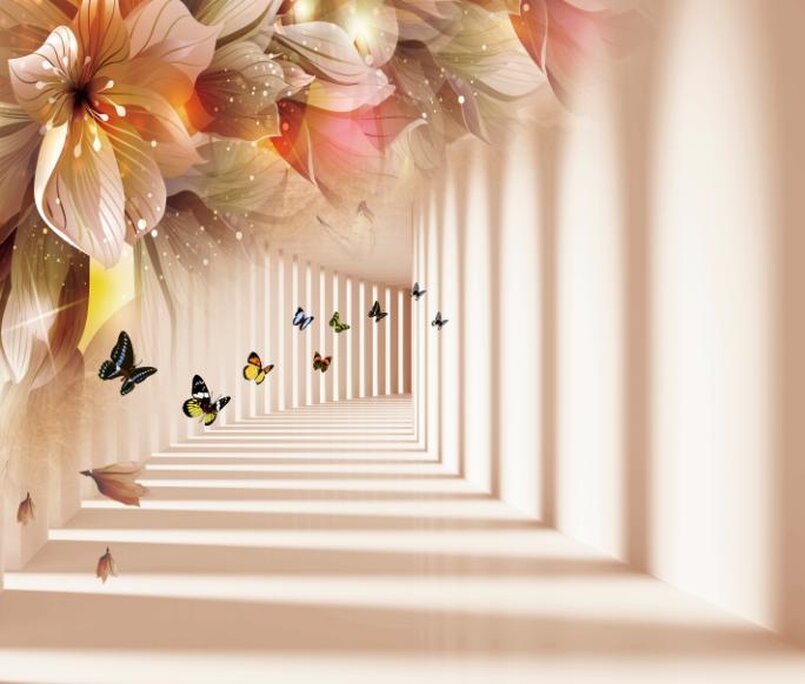 3D Тоннель ведущий вдаль окруженный лилиями с бабочками Артикул: FS_531