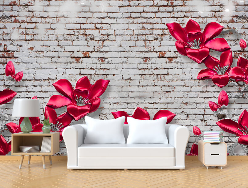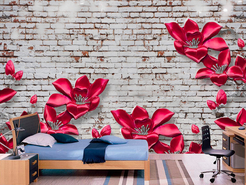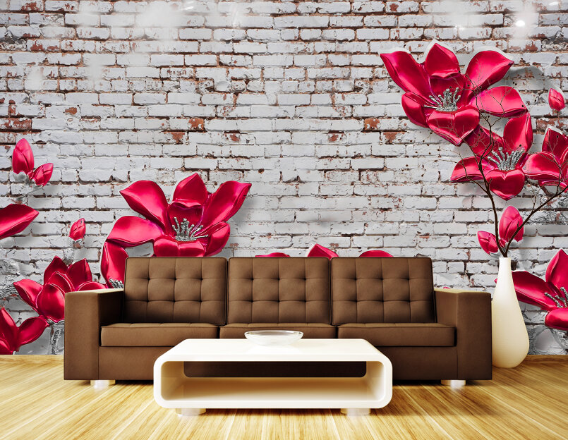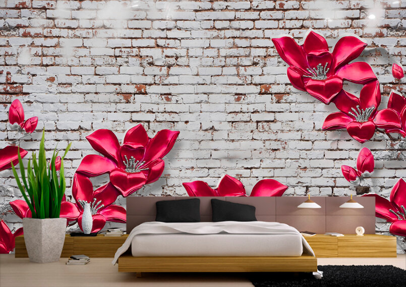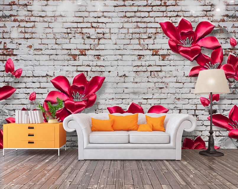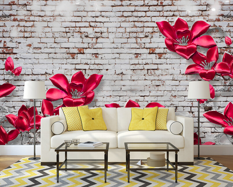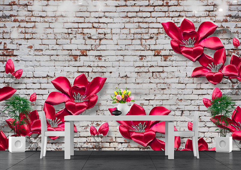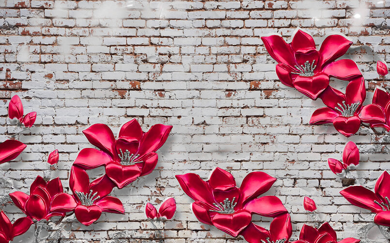 3D Яркие цветы из керамики на стене в стиле лофт Артикул: FS_539