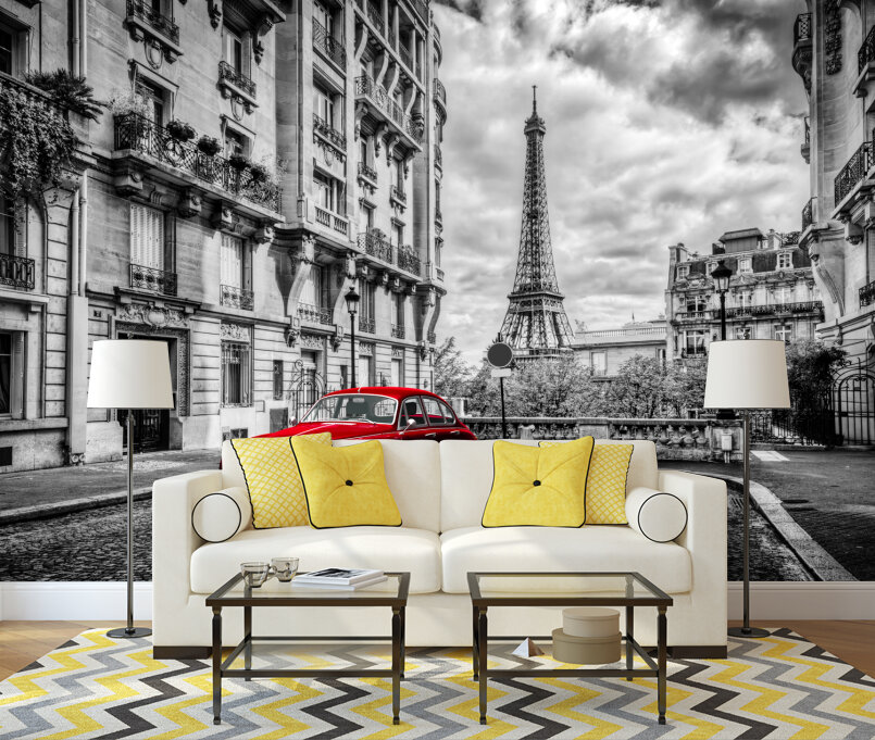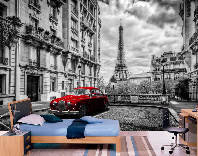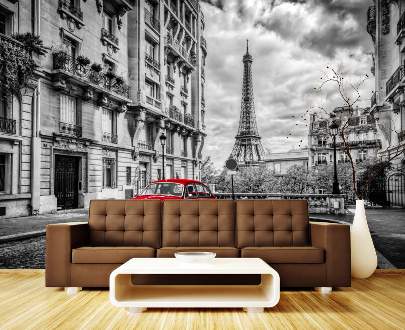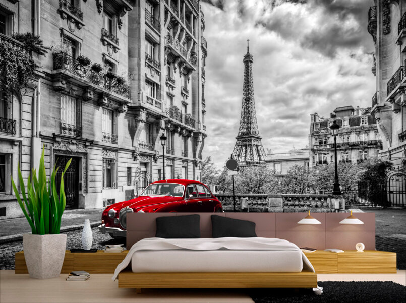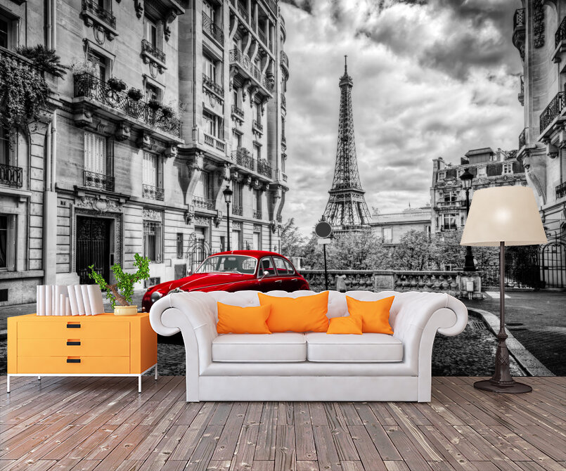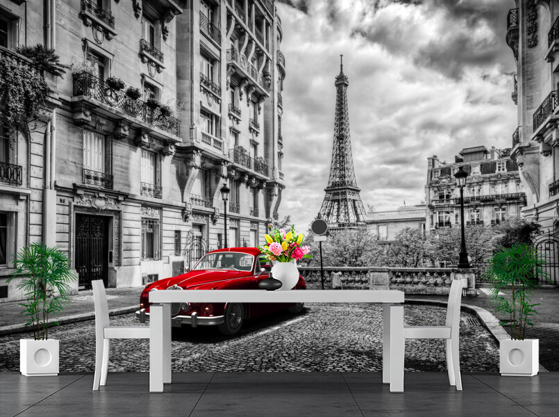 Красный автомобиль на парижской улочке Артикул: FS_938