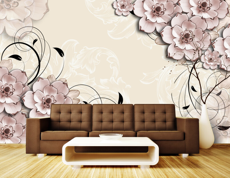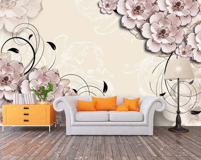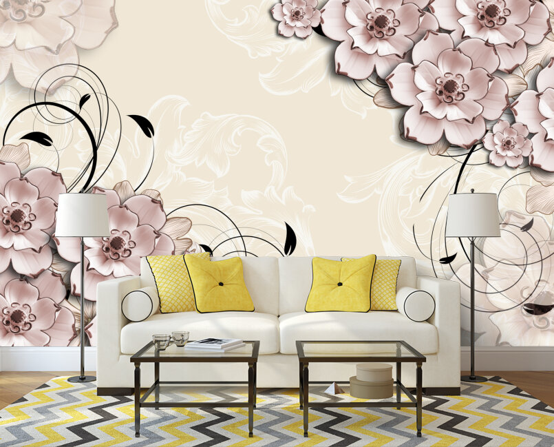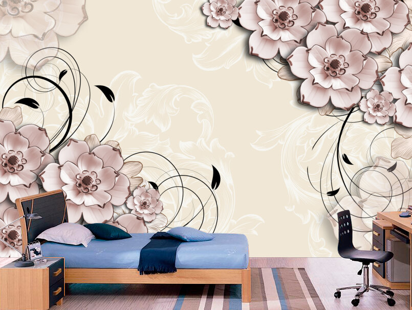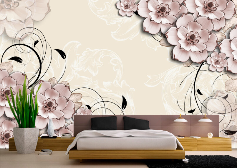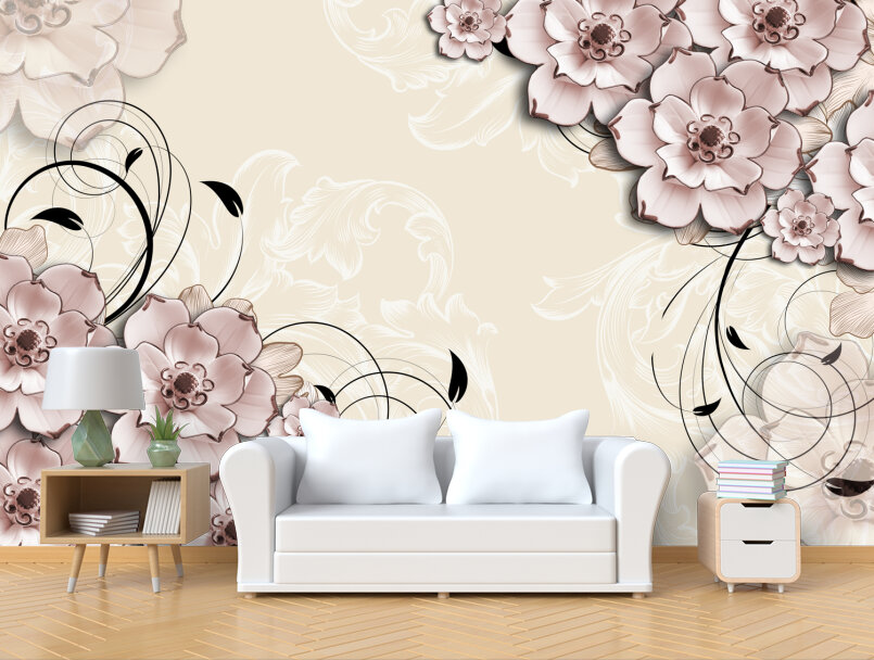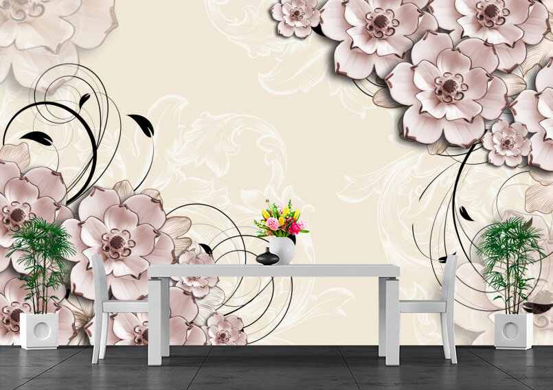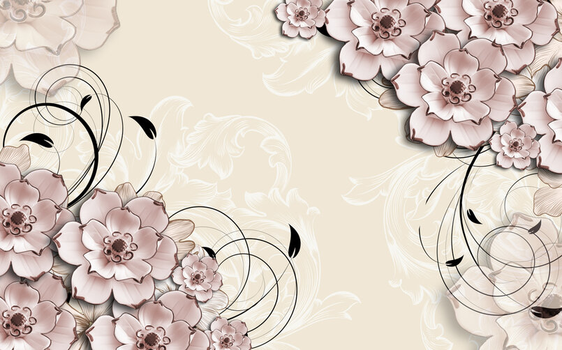 3D Бледно-розовые цветы с орнаментом Артикул: FS_645