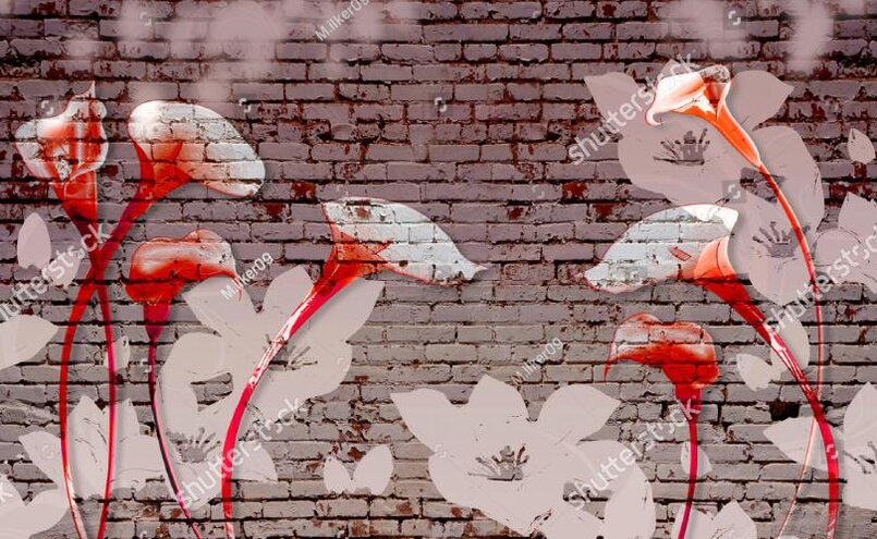 3D Цветы пропечатанные на кирпичной стене Артикул: FS_540