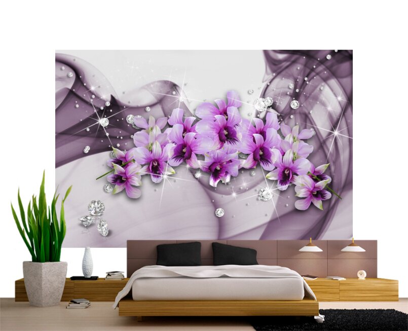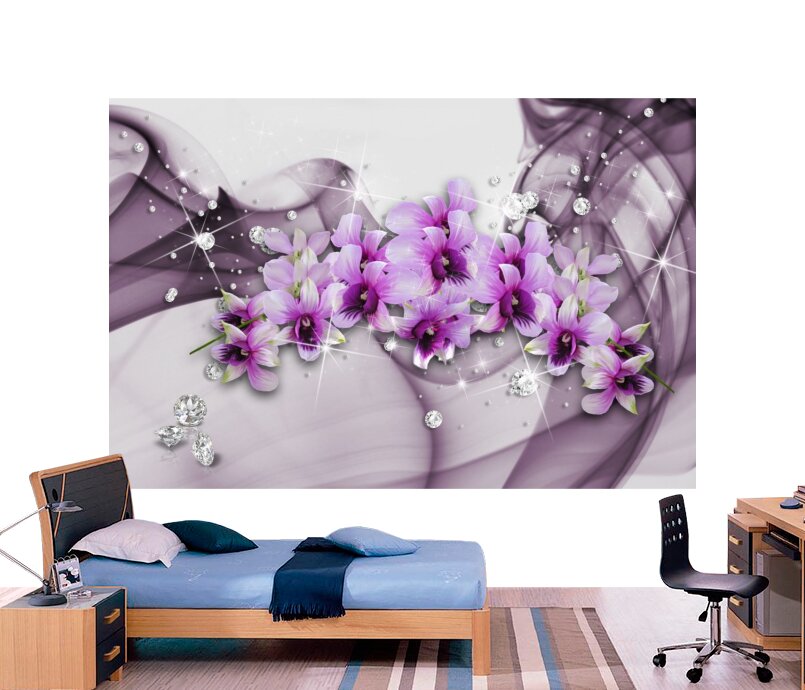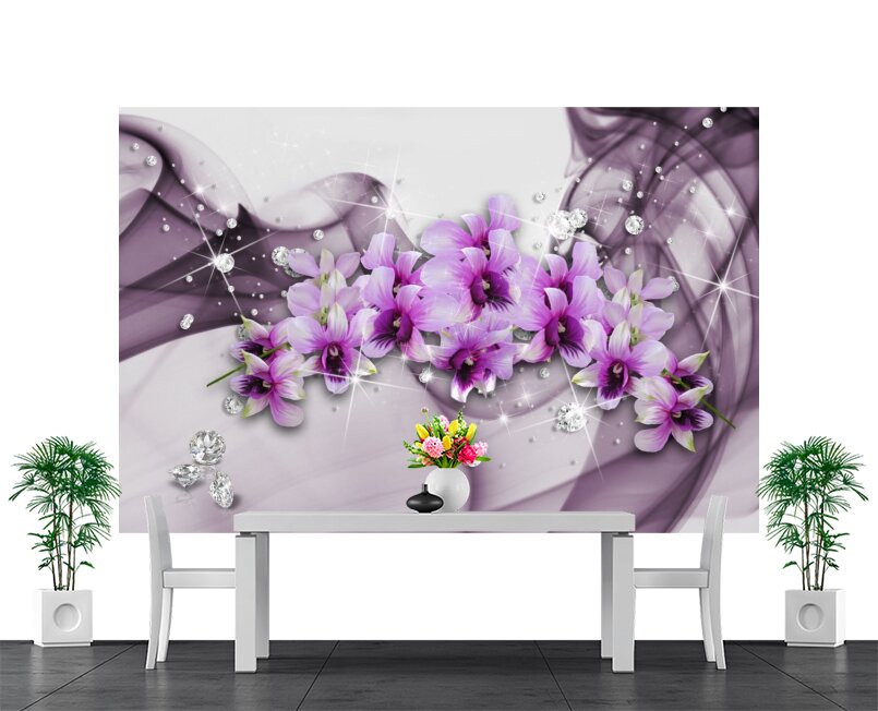 3D Нежно-фиолетовые орхидеи и стразы Артикул: FS_564