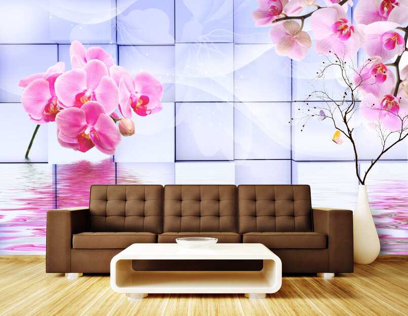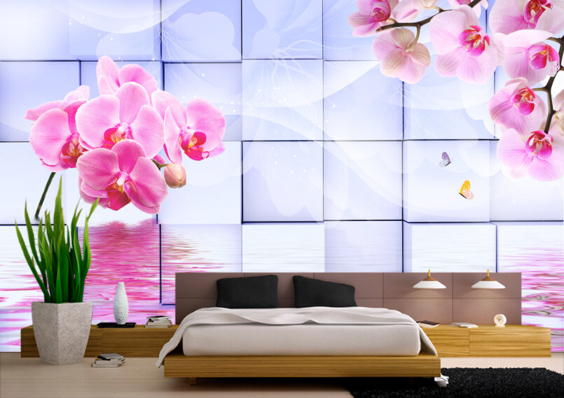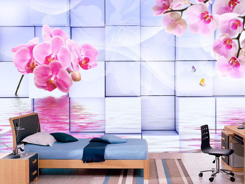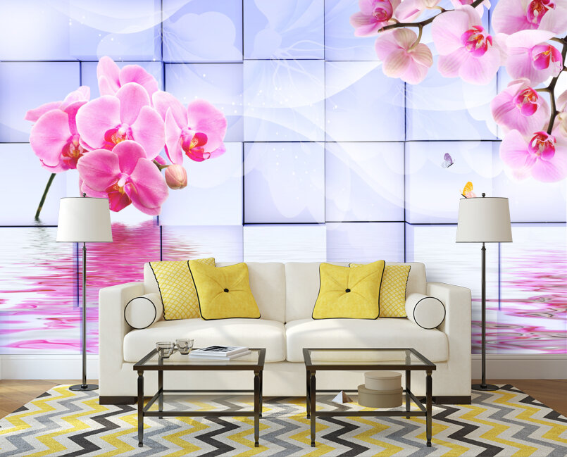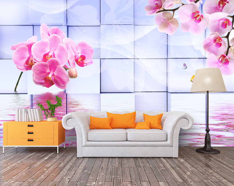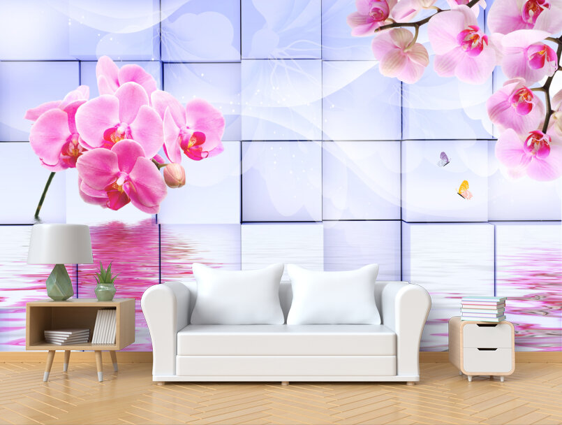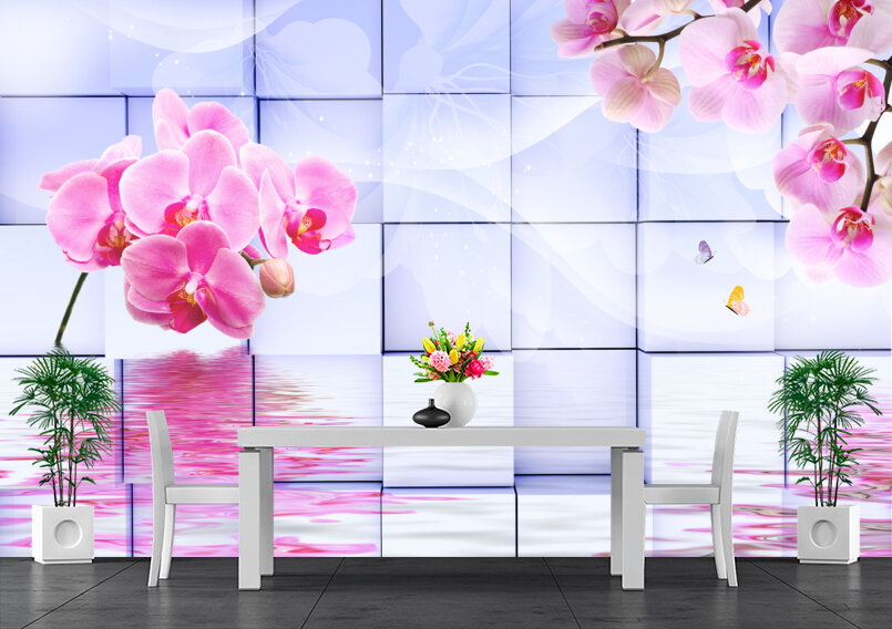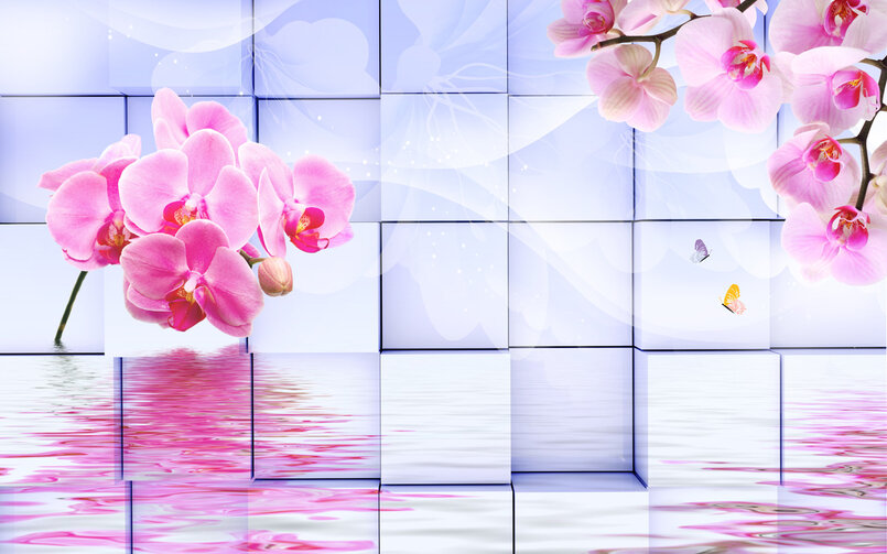 3D Орхидеи на фоне объемной стены из кубиков Артикул: FS_450
