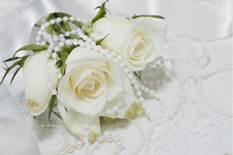 Белые розы на шелке с нитками жемчуга Артикул: FS_1506