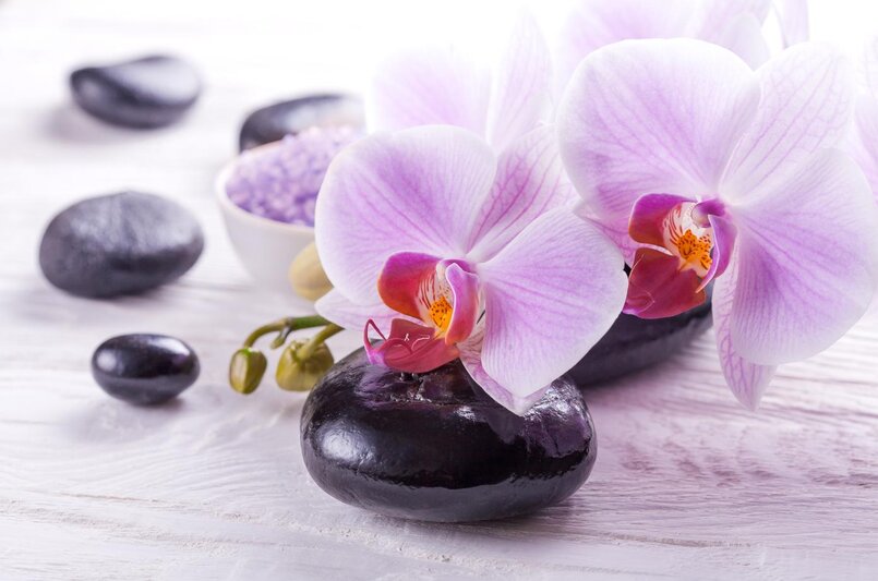 Цветки орхидеи на черных камнях Артикул: FS_3323