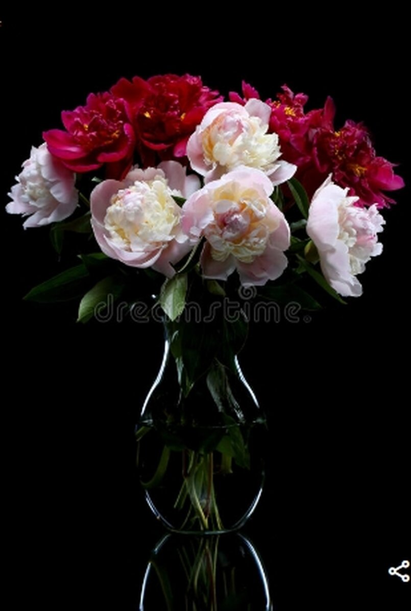 Красные и белые пионы в стеклянной вазе Артикул: FS_1216