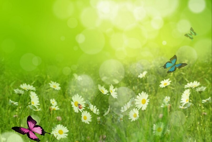 Ромашки с бабочками на цветущем лугу Артикул: FS_1334