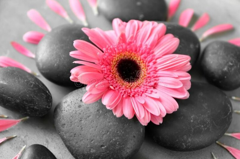 Розовая гербера и камни в окружении лепестков Артикул: FS_1120