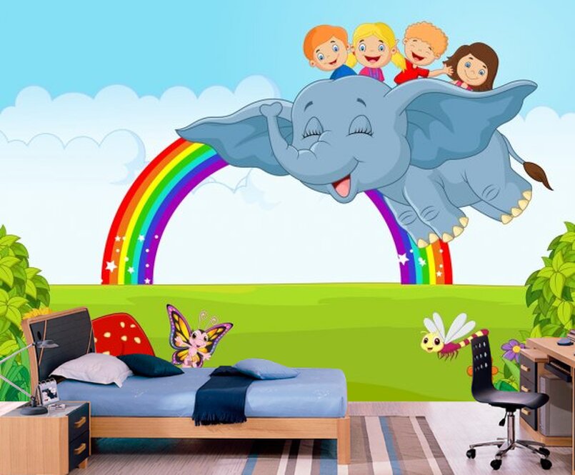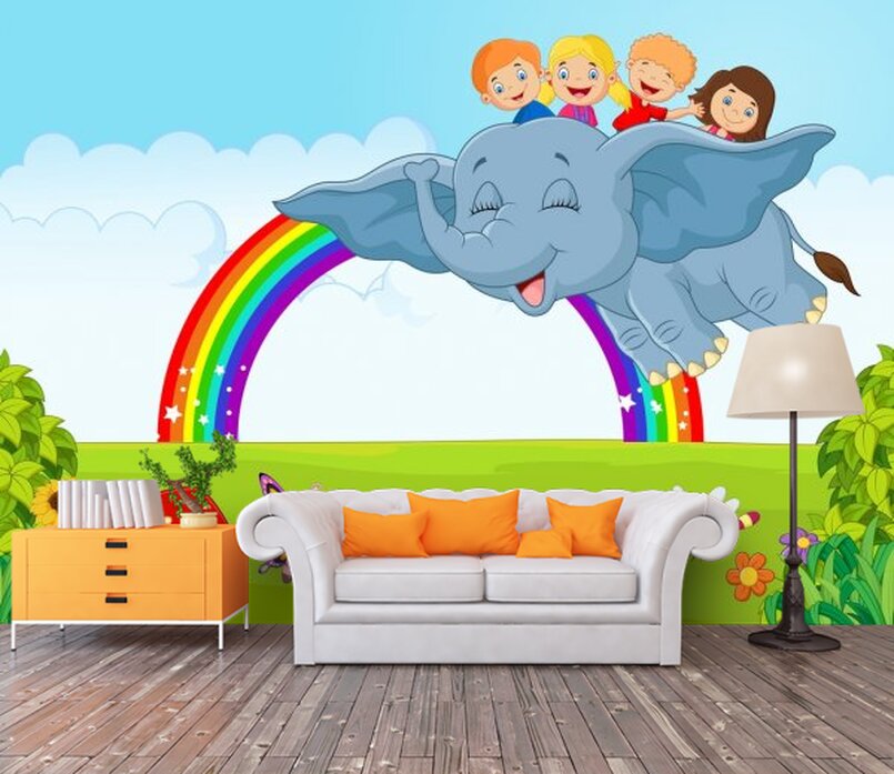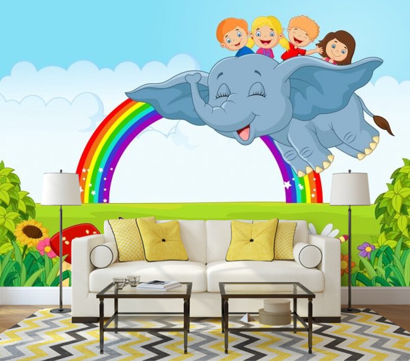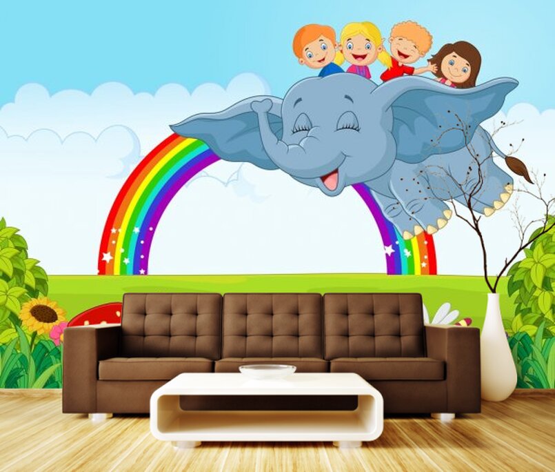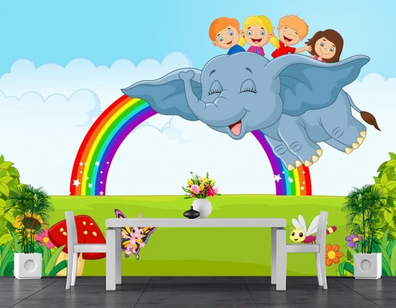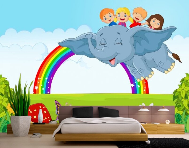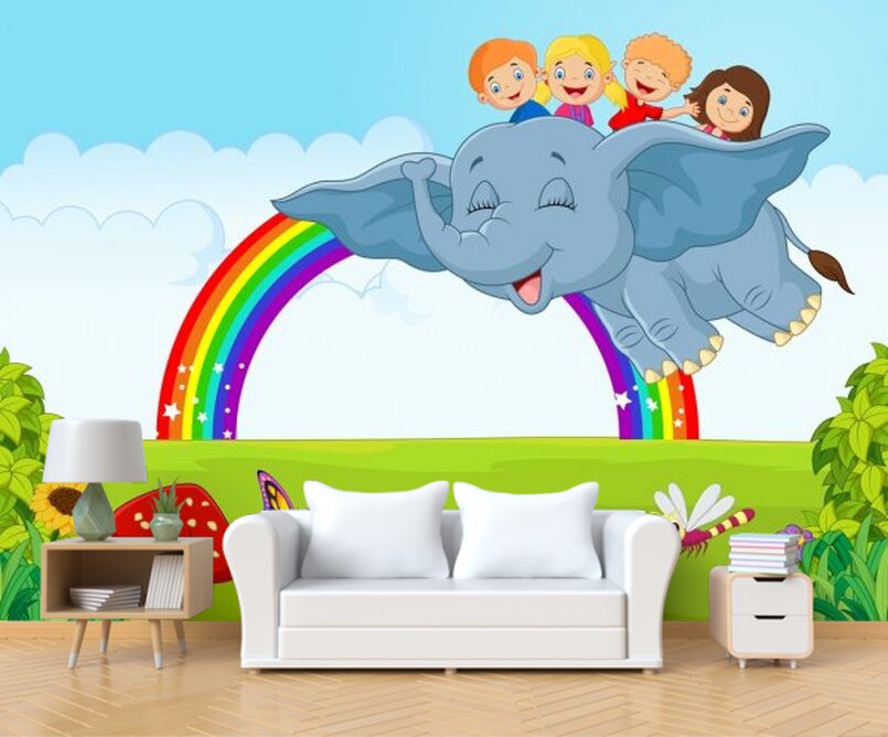 Летящие на радугу слоник и дети Артикул: FS_2360