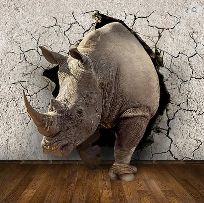 3D Носорог проходит сквозь бетонную стену Артикул: FS_528