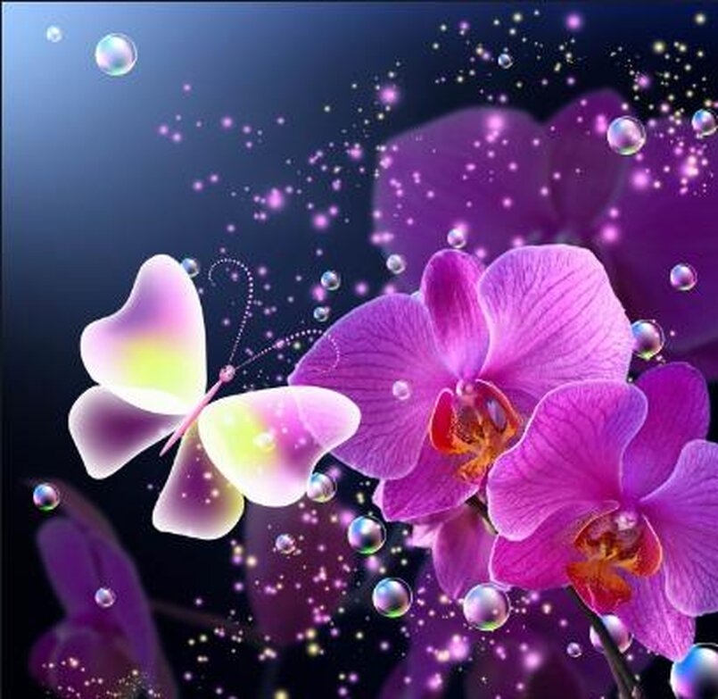 Порхающая бабочка над орхидеей Артикул: FS_1226
