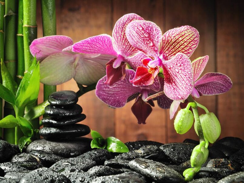 Ветка орхидеи на черных камнях Артикул: FS_1231