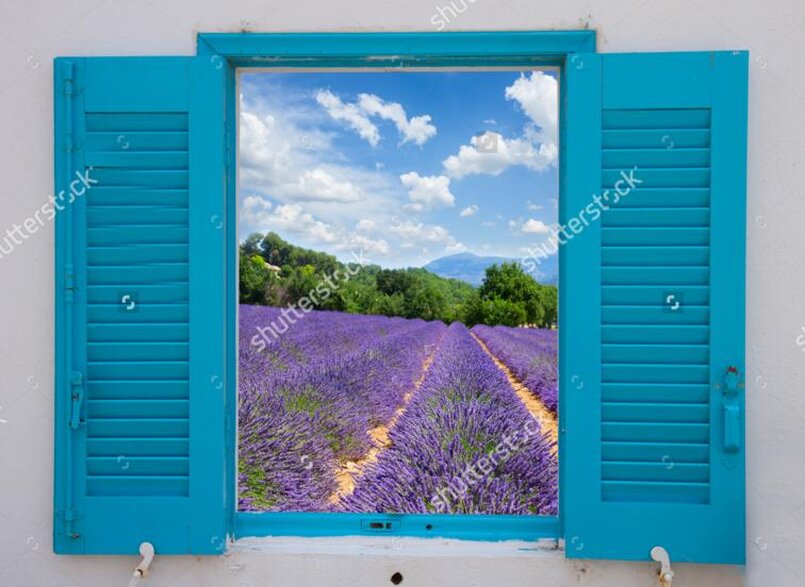 Бирюзовые ставни окна с видом на лавандовое поле Артикул: FS_4746