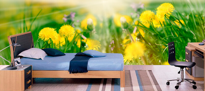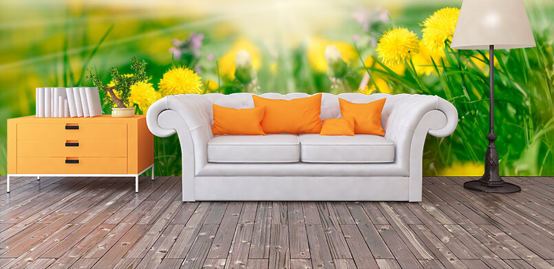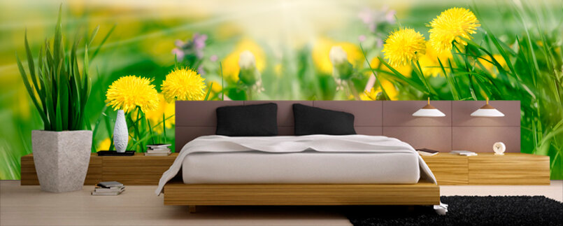 Желтые одуванчики на зеленой траве Артикул: FS_2914