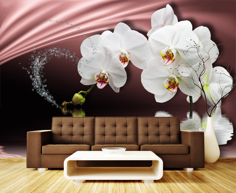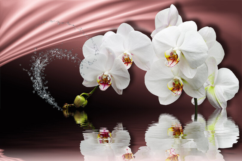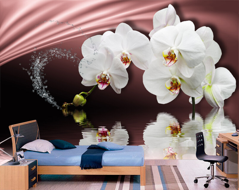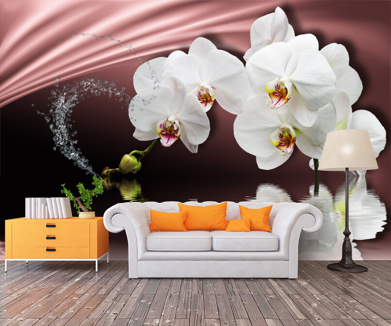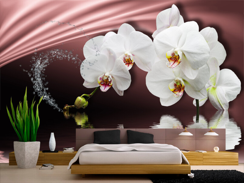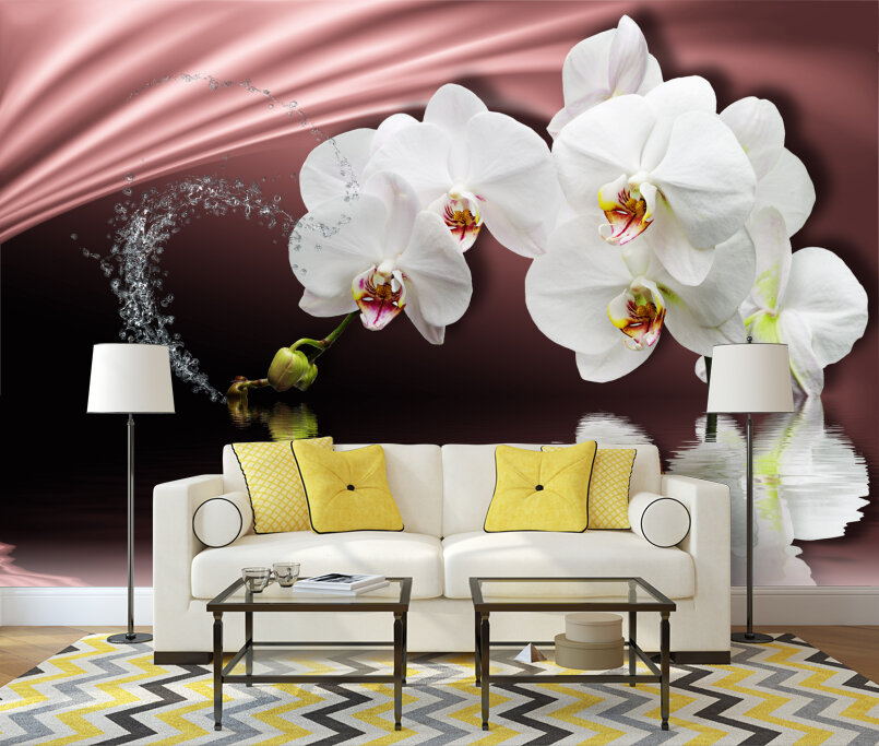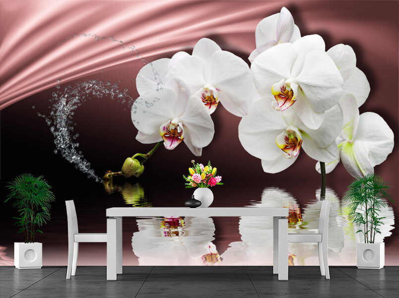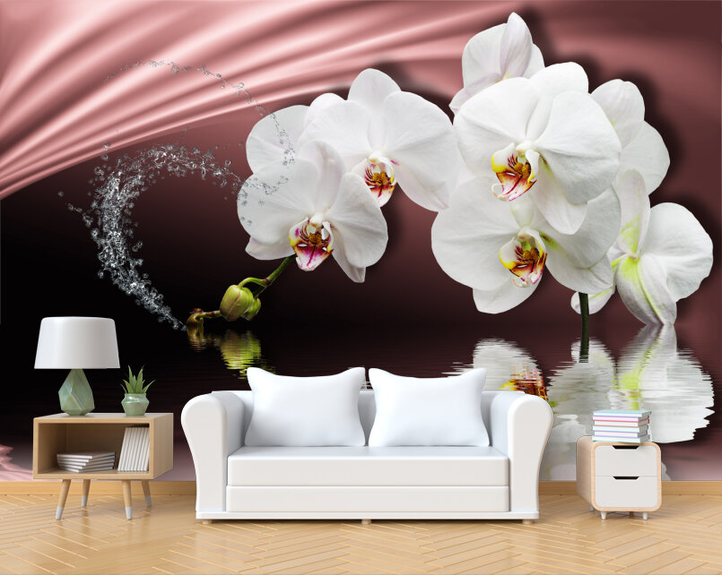 3D Белые орхидеи на розовом атласе Артикул: FS_501