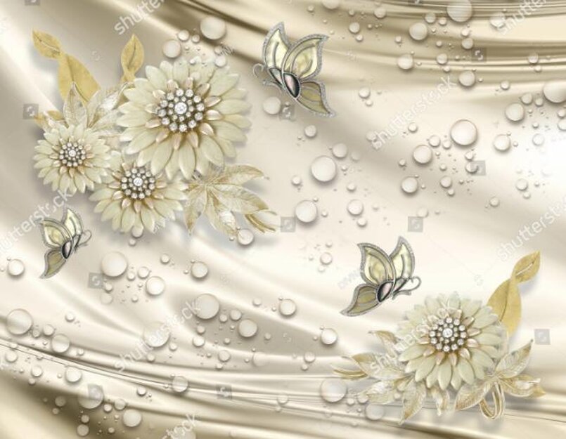 3D Цветы на бежевом шелке Артикул: FS_562