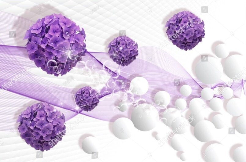 3D Фиолетовые цветы и сферы на белом фоне Артикул: FS_505