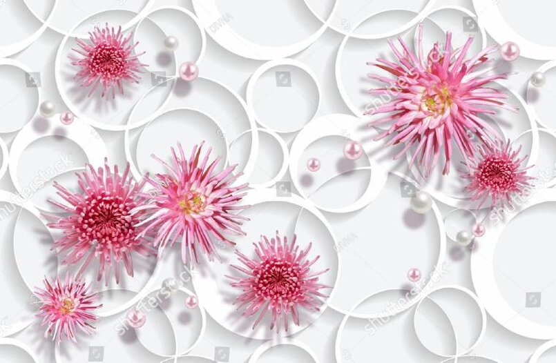 3D Хризантемы в окружении белых колец Артикул: FS_546