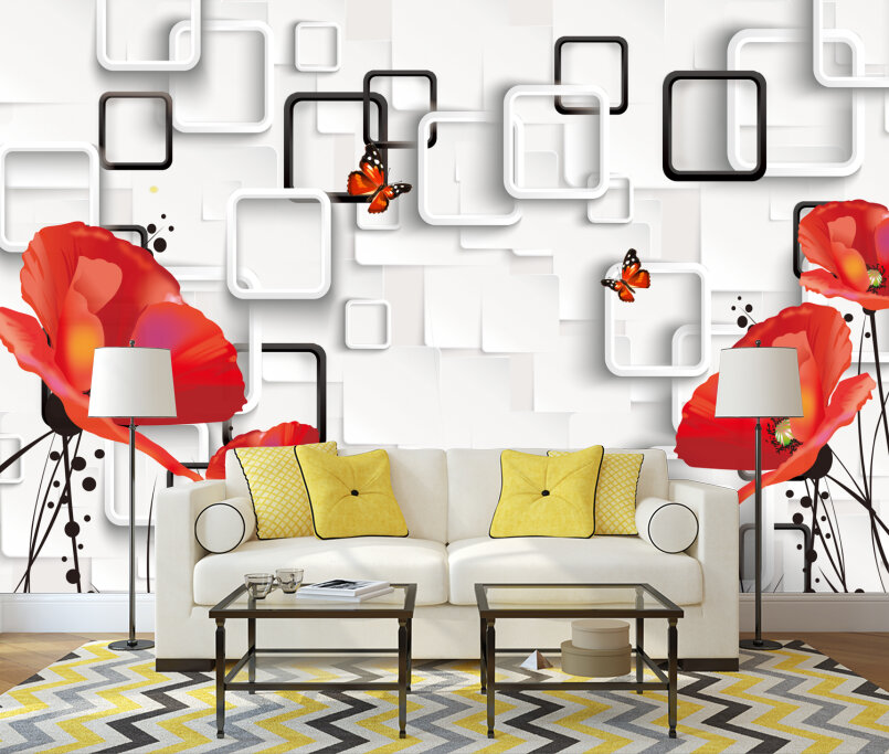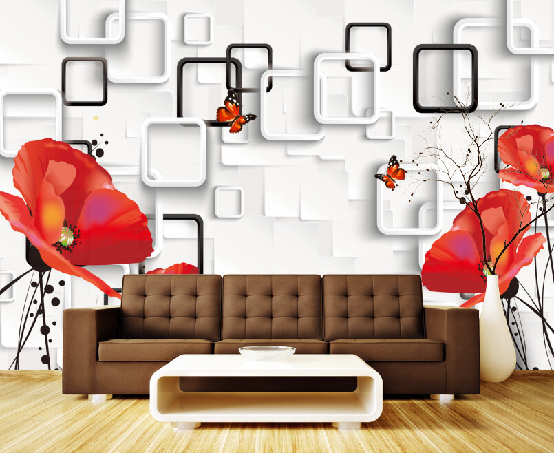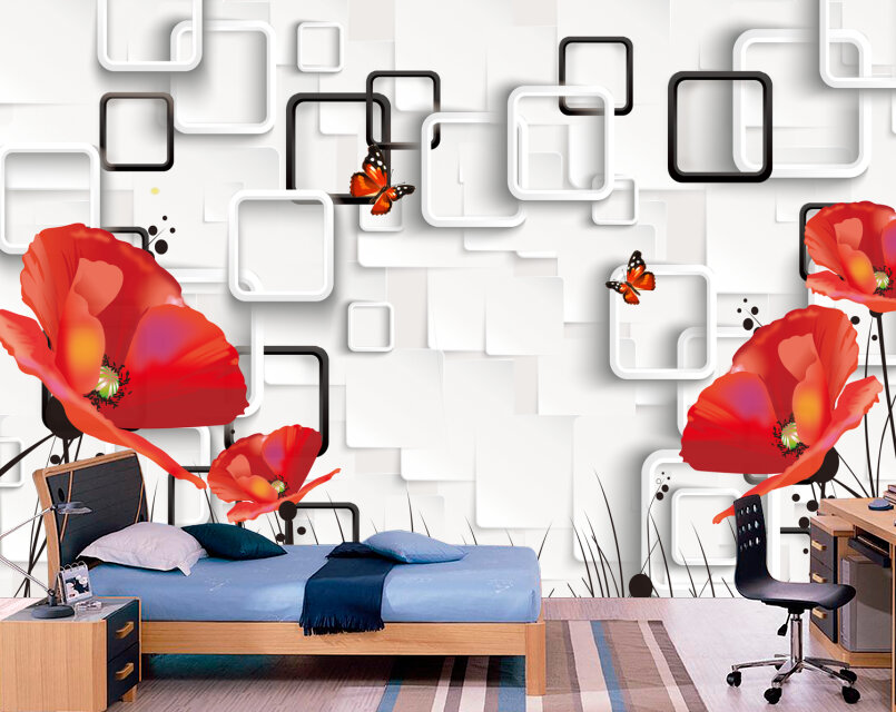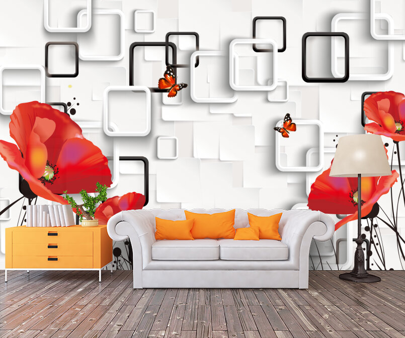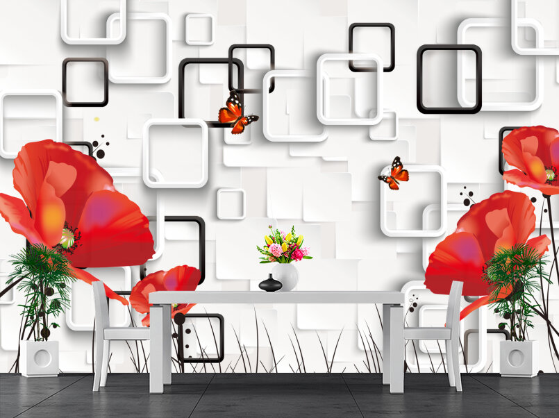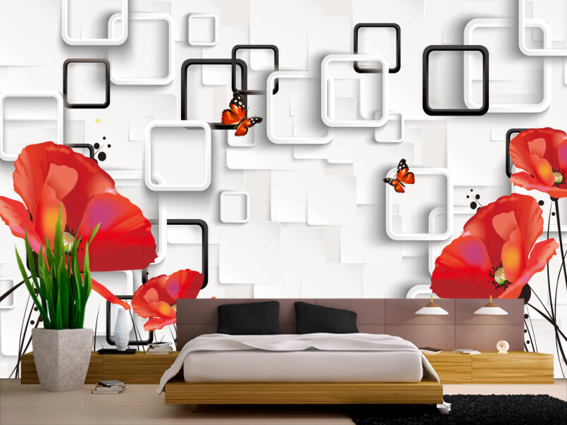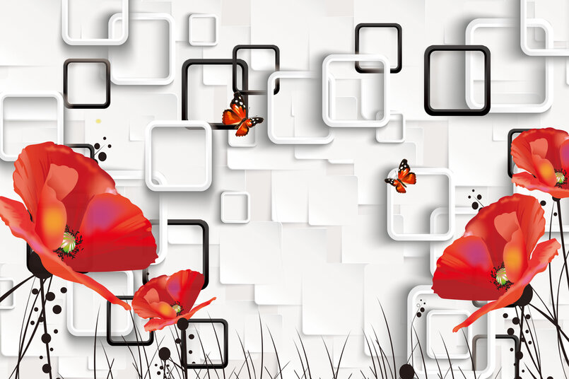 3D Красные маки на белом Артикул: FS_608