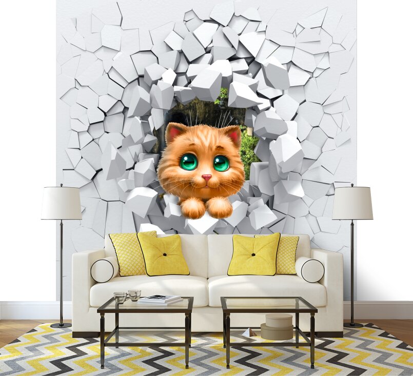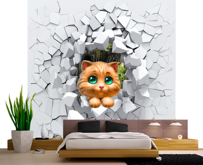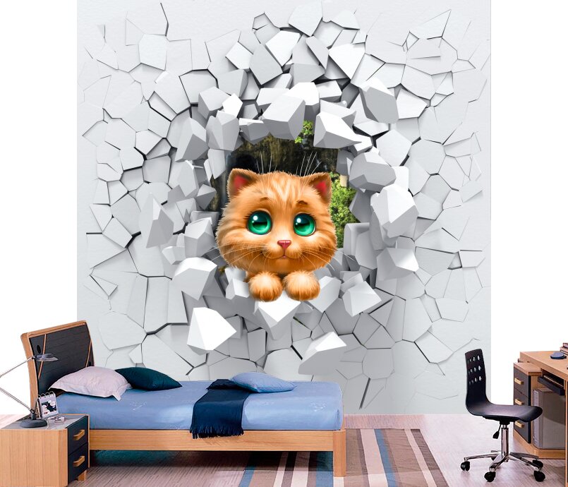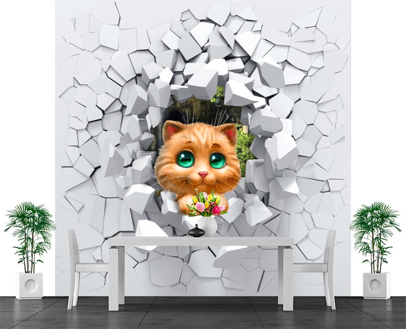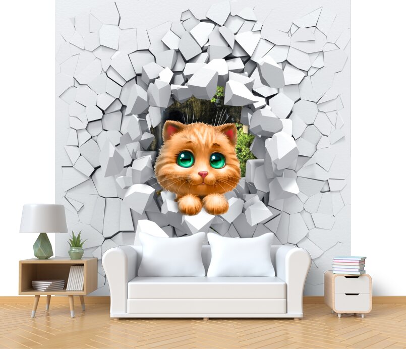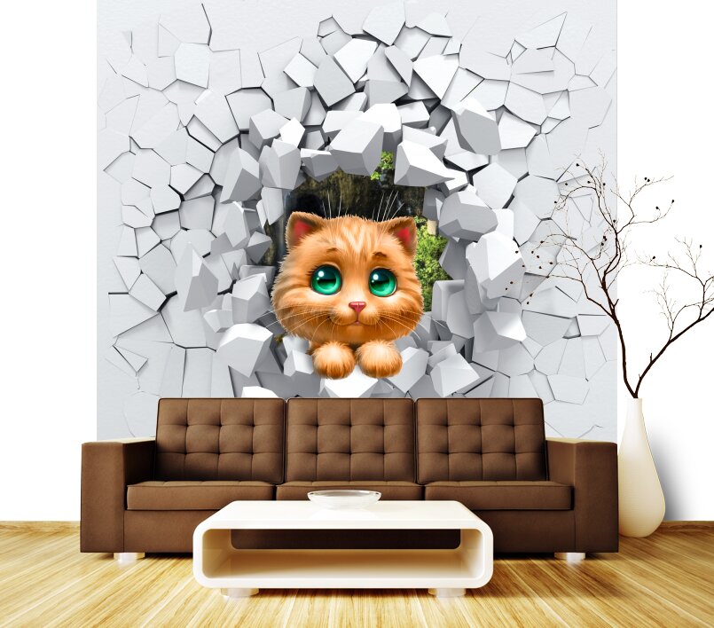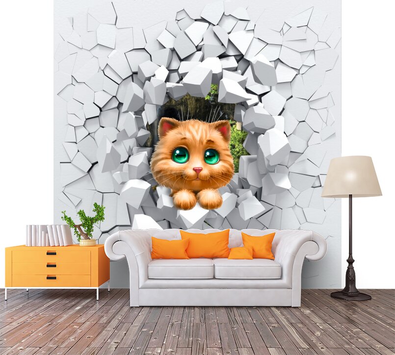 3D Милый котенок с зелеными глазами прыгает сквозь стену Артикул: FS_554