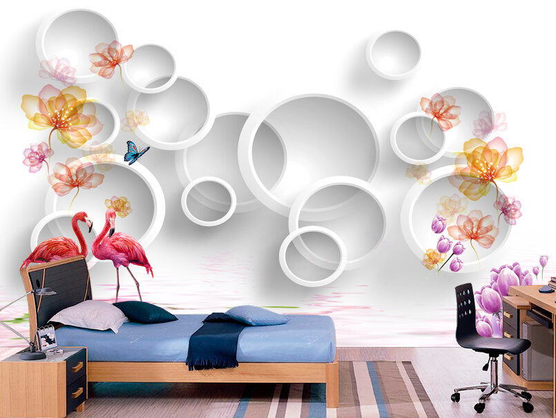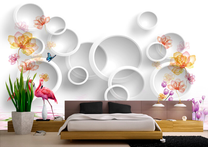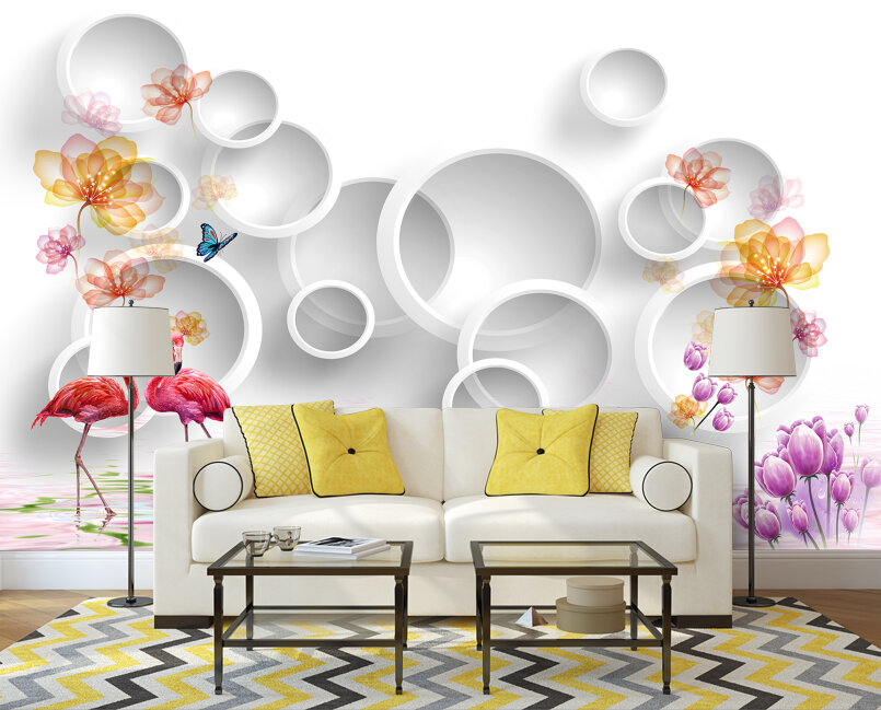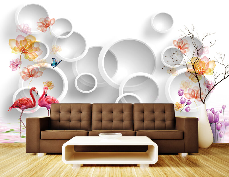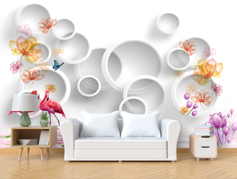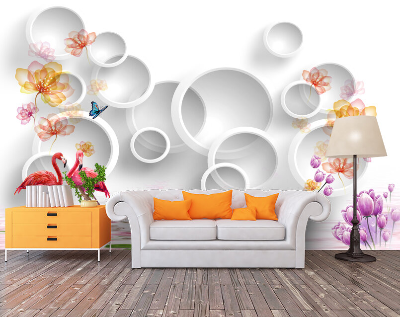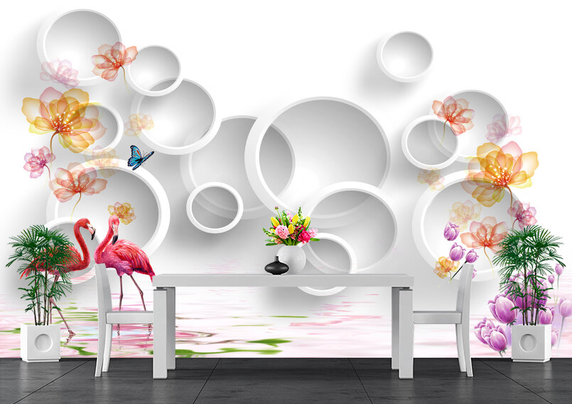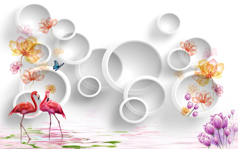 3D Огненные фламинго на фоне объемного круга Артикул: FS_464