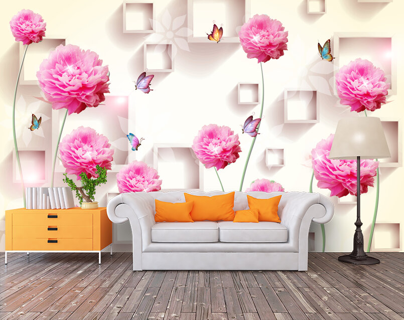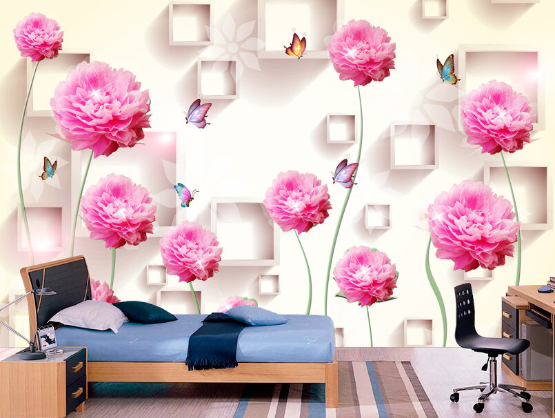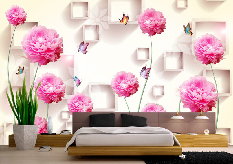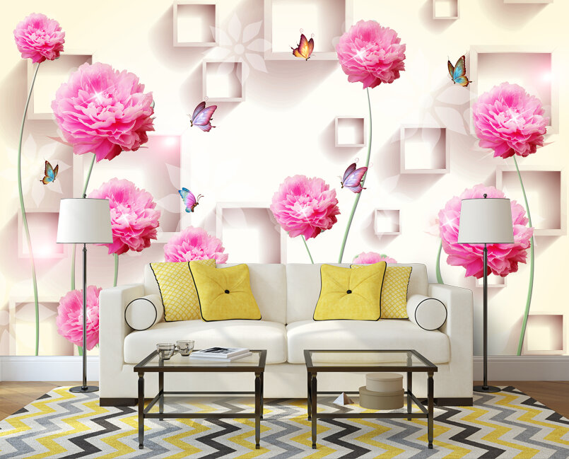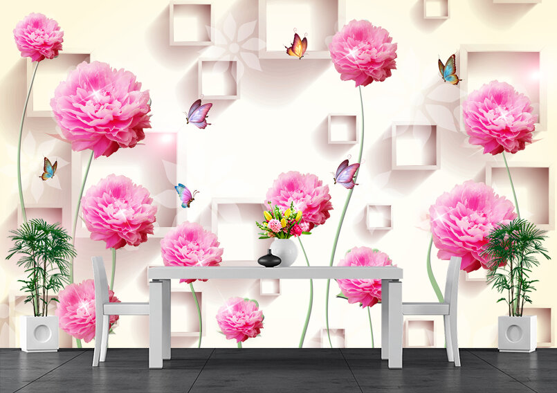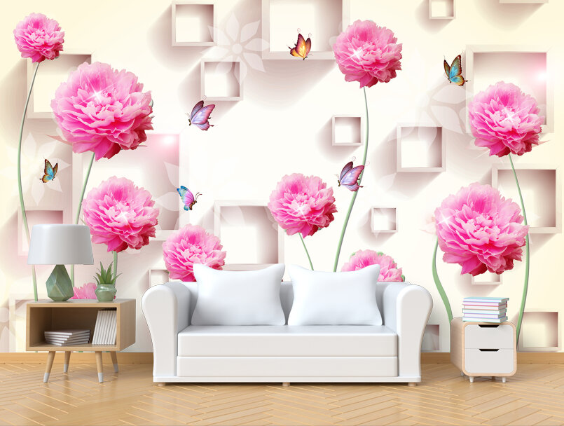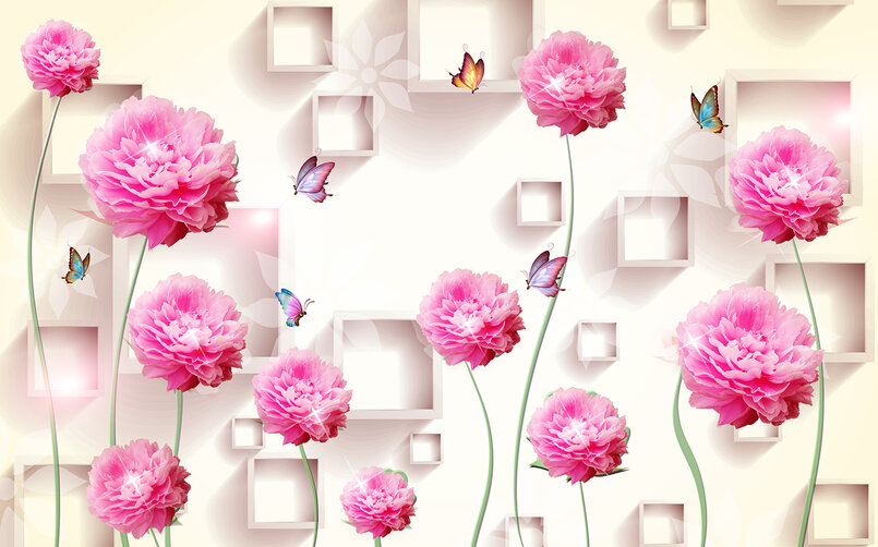 3D Пионы в саду с бабочками Артикул: FS_478