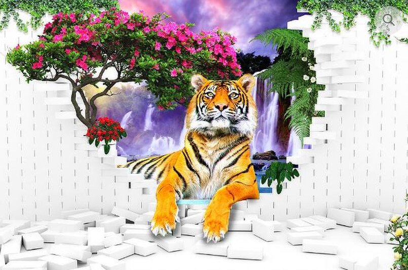 3D Тигр на фоне разрушенной стены Артикул: FS_519