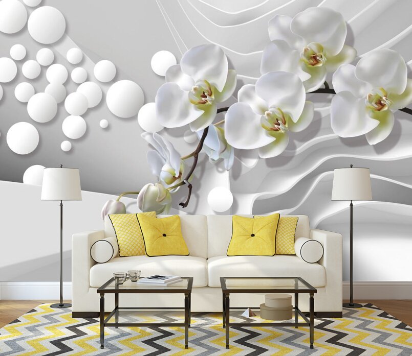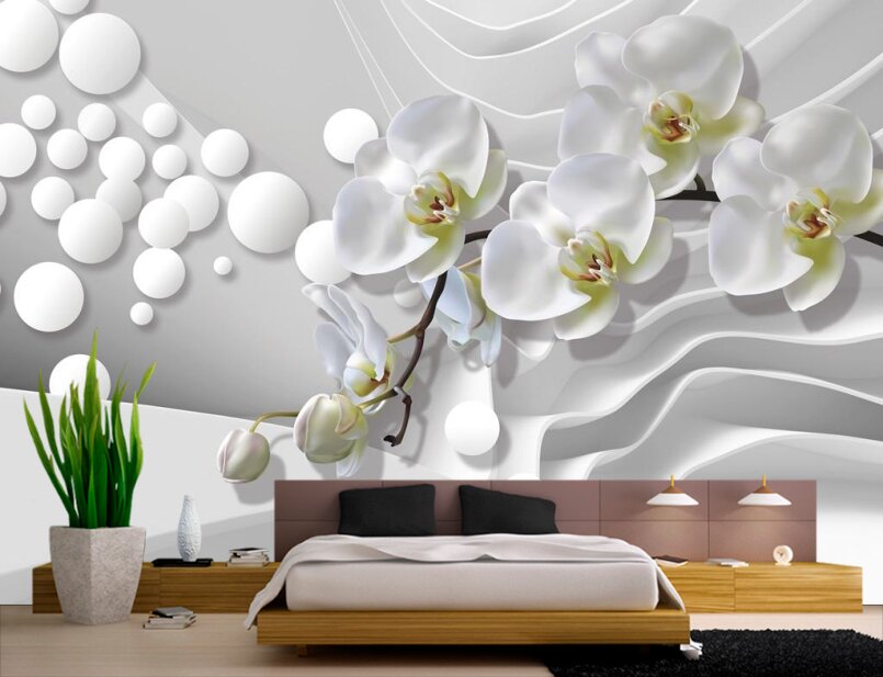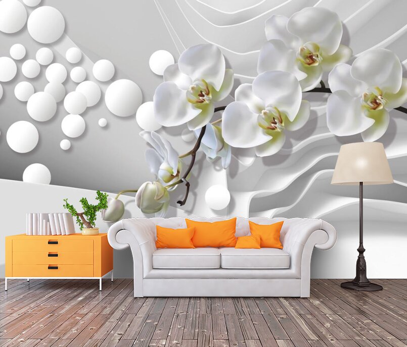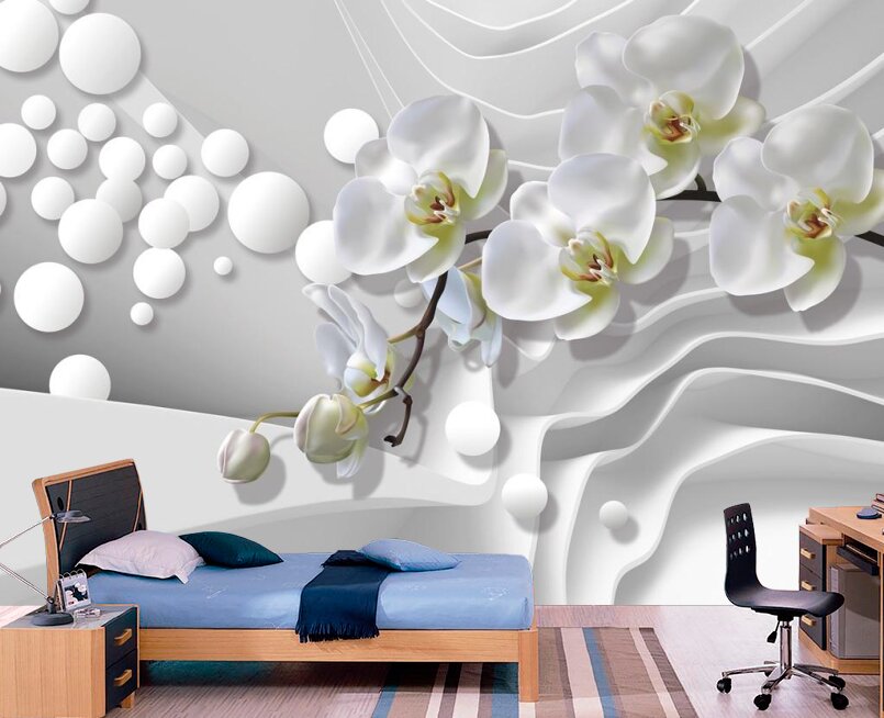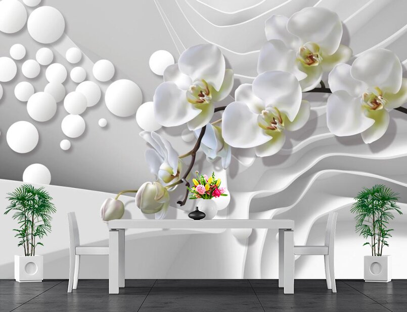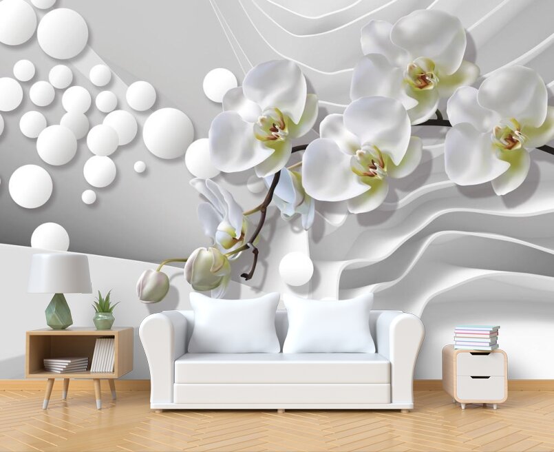 3D Ветка белых орхидей на светлом фоне Артикул: FS_503