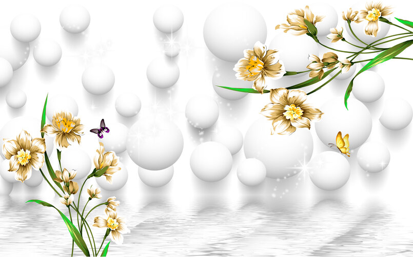 3D Ветки цветов и шары Артикул: FS_578