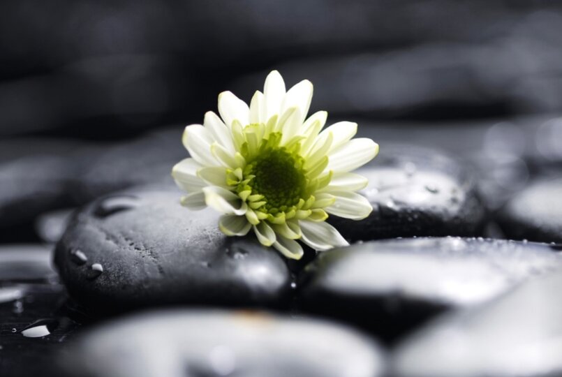 Белый одинокий цветок на камнях Артикул: FS_2860