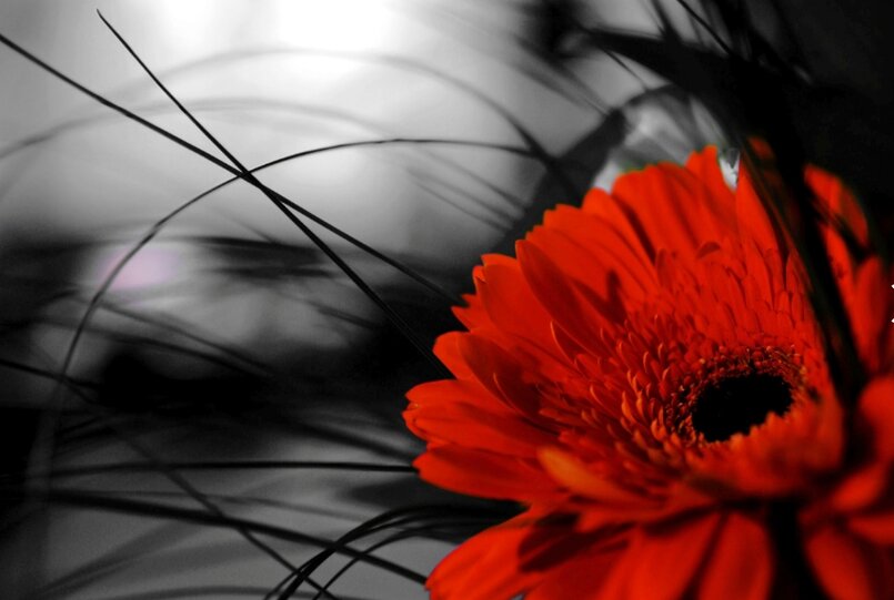 Красная гербера на черно-белом фоне Артикул: FS_1109