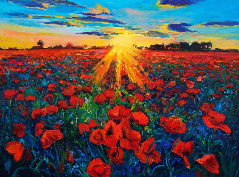Красные полевые маки на закате Артикул: FS_2927