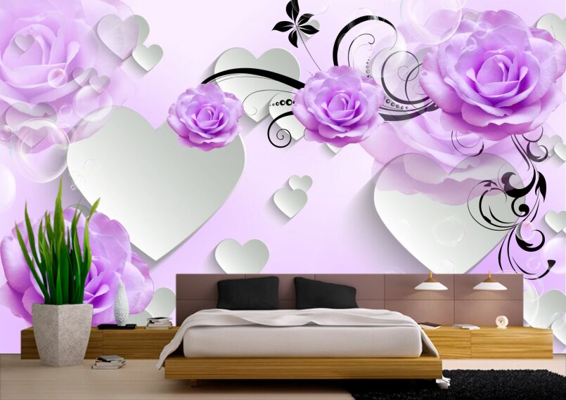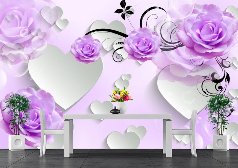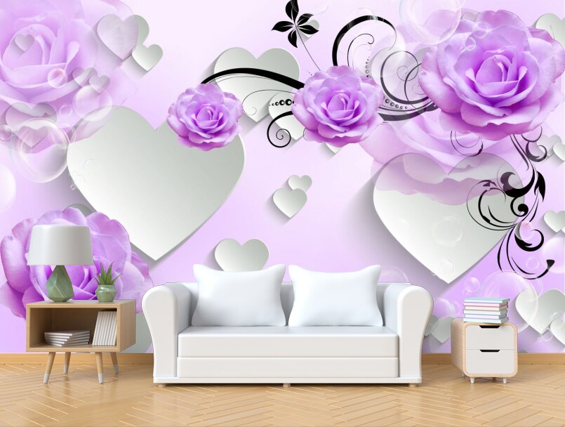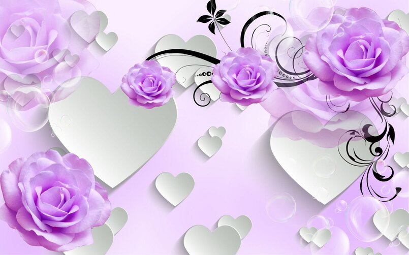 Фиолетовые розы и сердечки Артикул: С1002