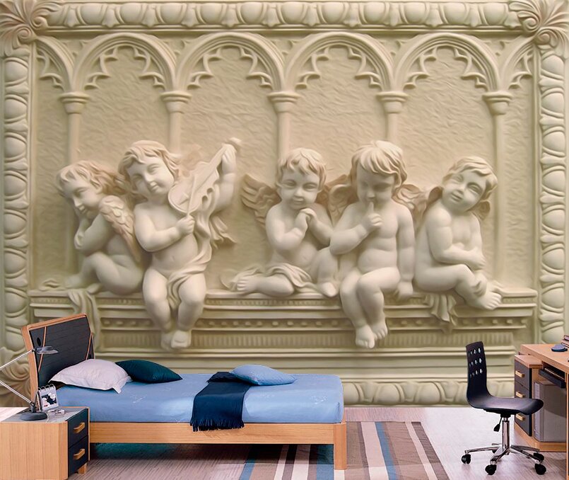 Это могут быть эко-обои, флизелиновые, фреска, виниловые и даже самоклеющиеся.